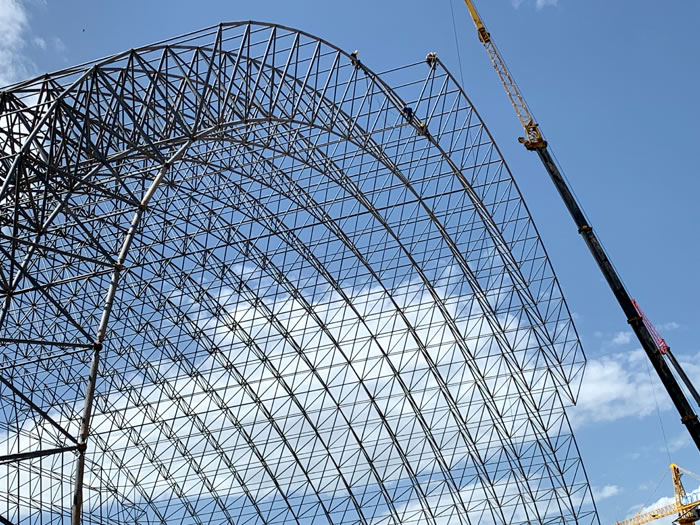 (2)网架加工前应对现场尺寸进行复测,确认无误后方可进行加工、安装;网架制作、运输、安装应遵守《空间网格结构技术规程》JGJ7-2010、《钢网架石河子螺栓球节点》JG/T 10-2009、《钢网架石河子螺栓球节点用高强度螺栓》 GB/T 16939-2016、《石河子钢结构石河子工程石河子施工规范》 GB50755-2012、《石河子钢结构石河子工程施工质量验收标准》 GB50205-2020。